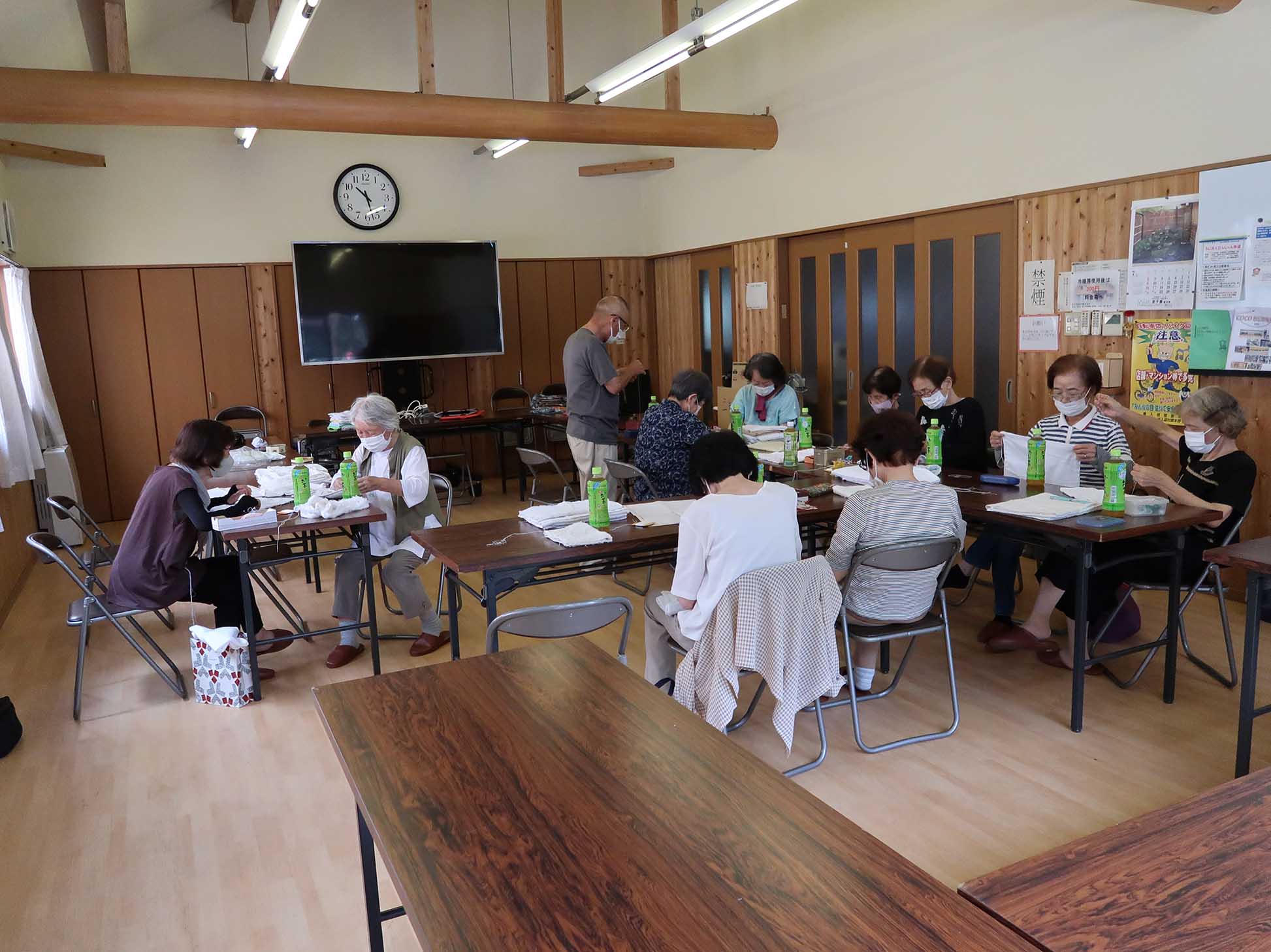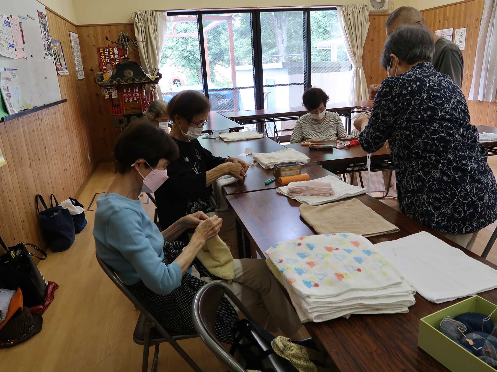 7月21日雑巾作りをおこなったときの様子です
