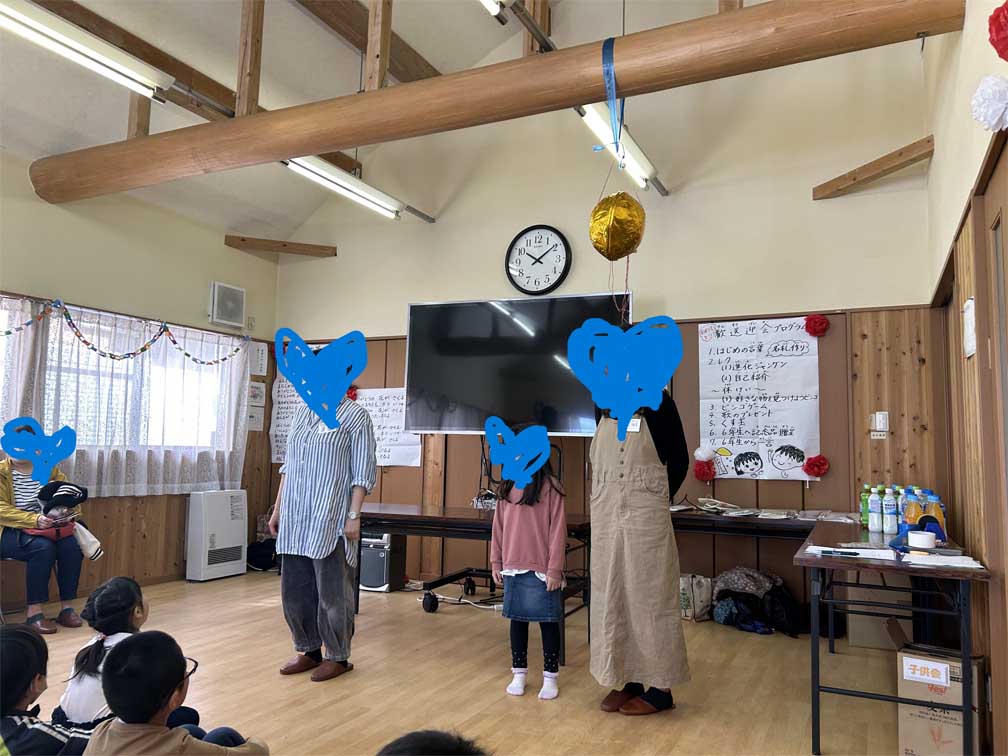 3月30日(土)10時から、集会所にて子ども会主催による新一年生お祝い会(2名加入)と六年生を送る会の歓送迎会が行われました