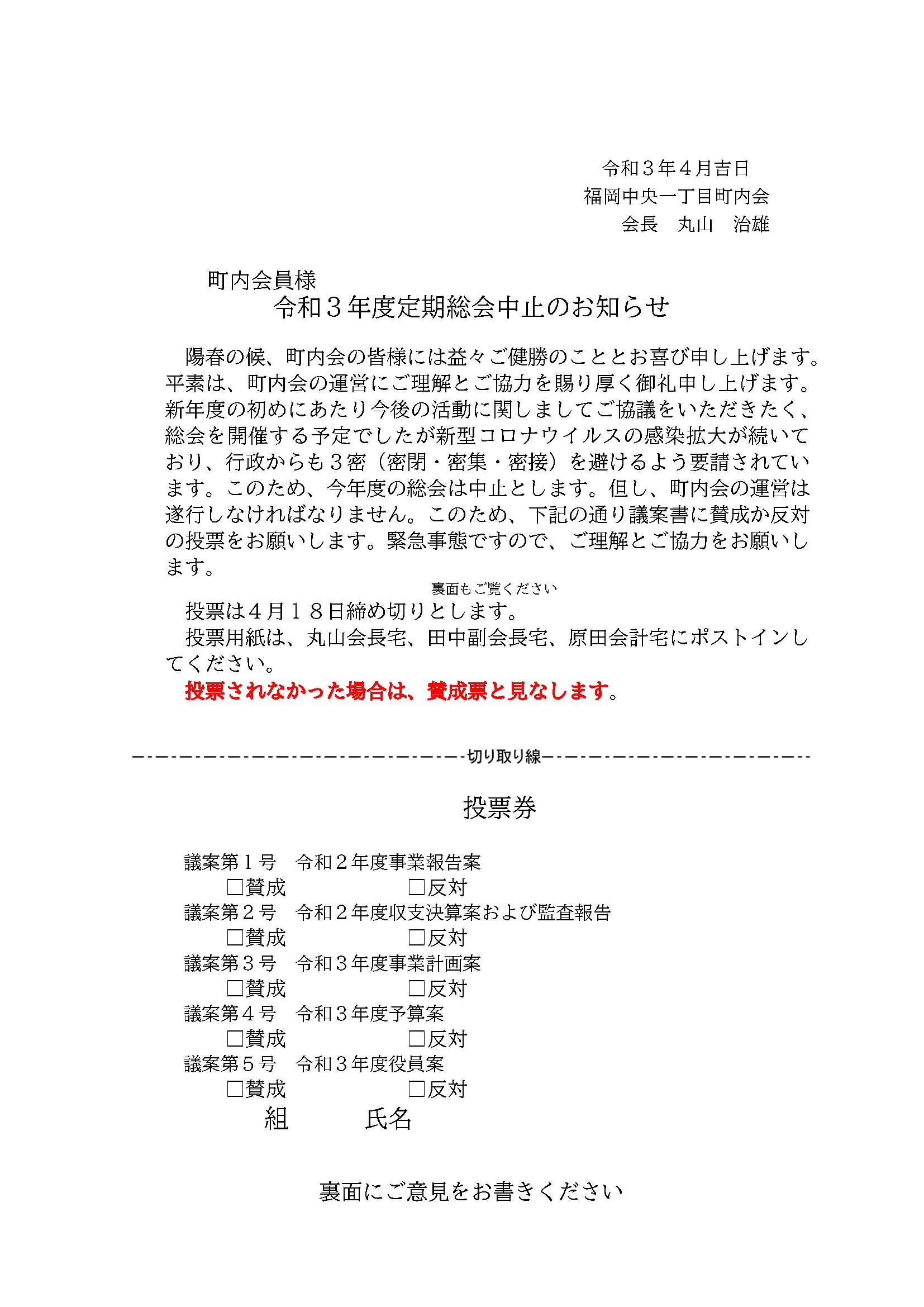 総会中止のお知らせ