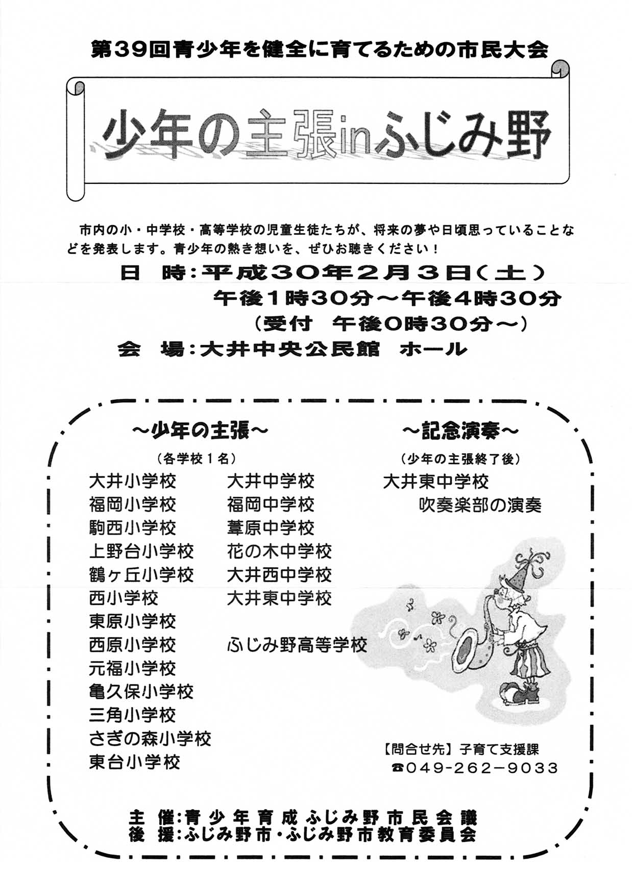 | 少年の主張inふじみ野のお知らせです。 | |||||||