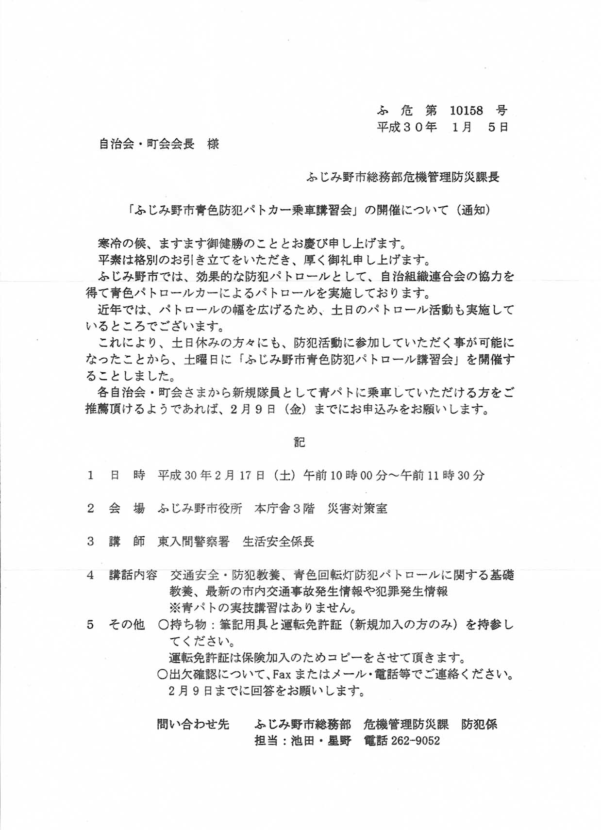 | ふじみ野市防犯パトカー乗車講習会のお知らせです。 | |||||||